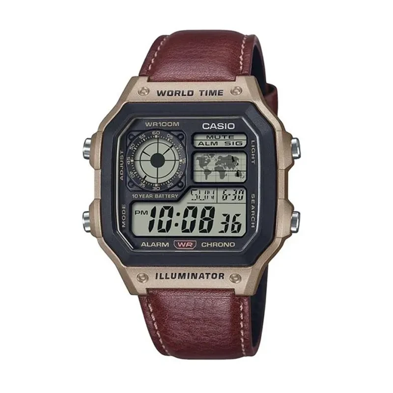 The Casio Men’s Youth AE-1200WHD-1AVDF is a versatile and stylish watch designed for the modern, active man. Combining a durable resin case with a genuine brown leather strap, it ensures both comfort and long-lasting durability. With Japan Quartz movement, this watch guarantees precise timekeeping, featuring both analog and digital displays.